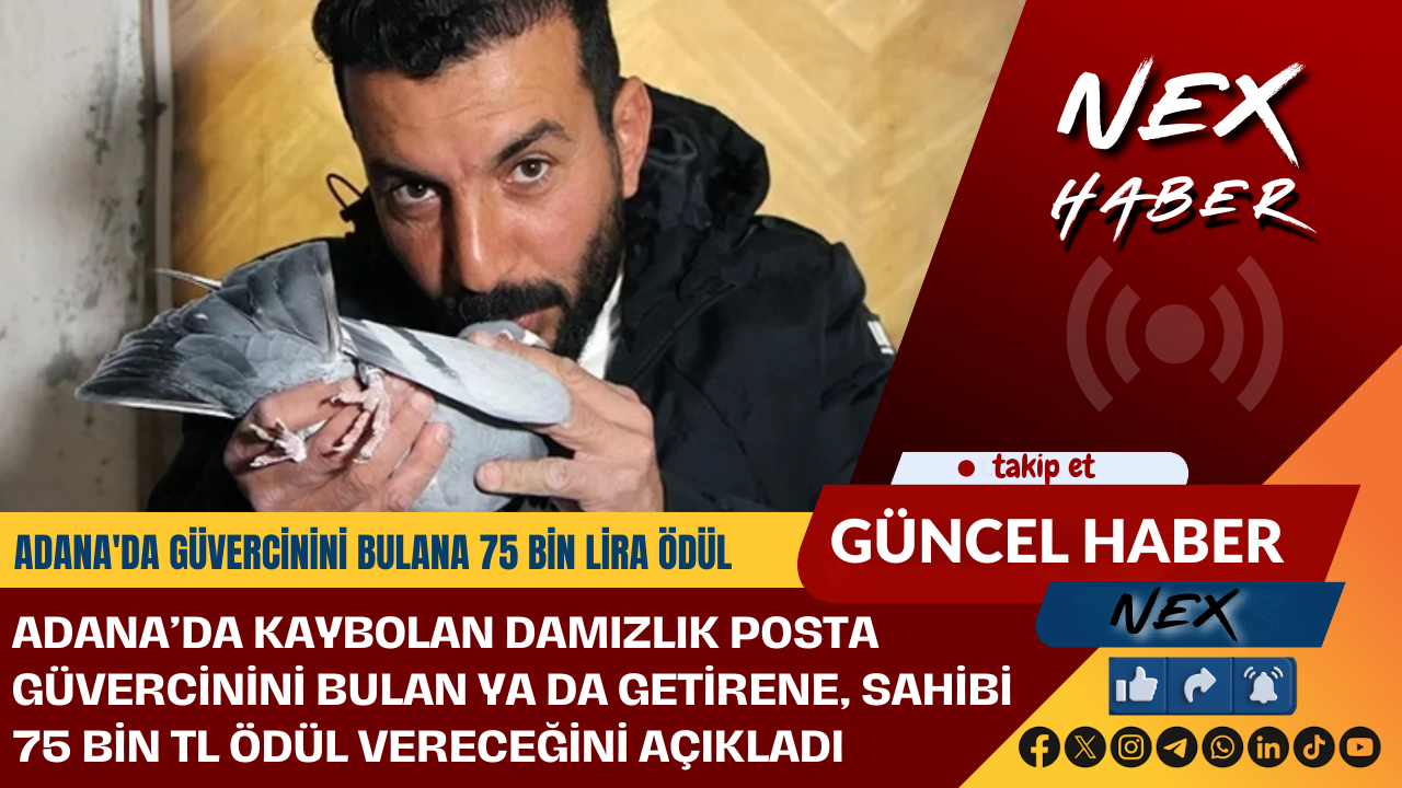 Adana’da hobi amaçlı güvercin besleyen 36 yaşındaki fabrika işçisi Ercan Arıcı, kaybolan damızlık posta güvercinini bulan ya da getirene 75 bin TL ödül vereceğini duyurdu. Arıcı, kuşunun kendileri için büyük bir manevi değere sahip olduğunu belirterek, “Evladım gibi oldu, maddi değerinin çok ötesinde” dedi.
