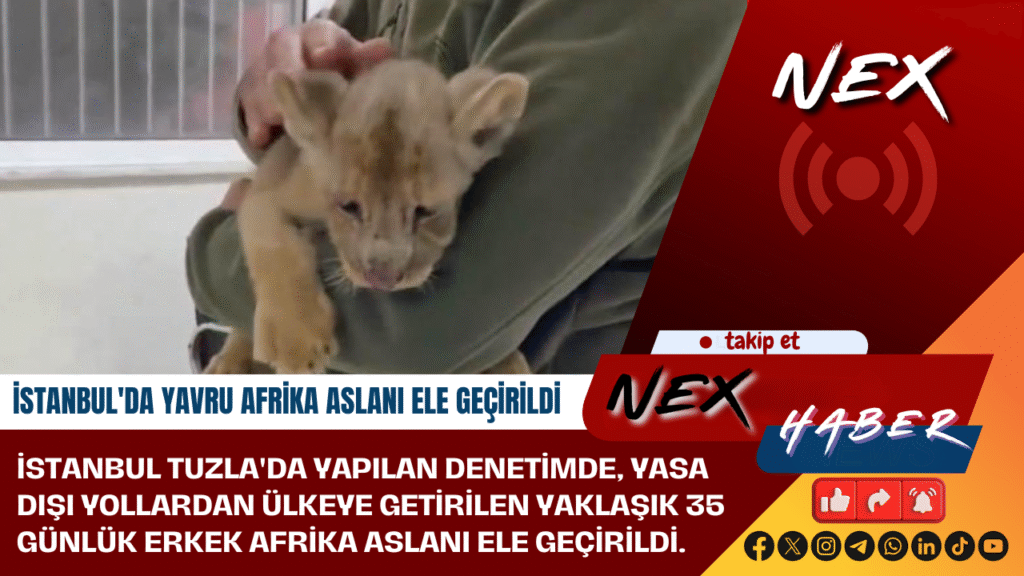İstanbul Tuzla’da yapılan denetimde, yasa dışı yollardan ülkeye getirilen yaklaşık 35 günlük erkek Afrika aslanı ele geçirildi.