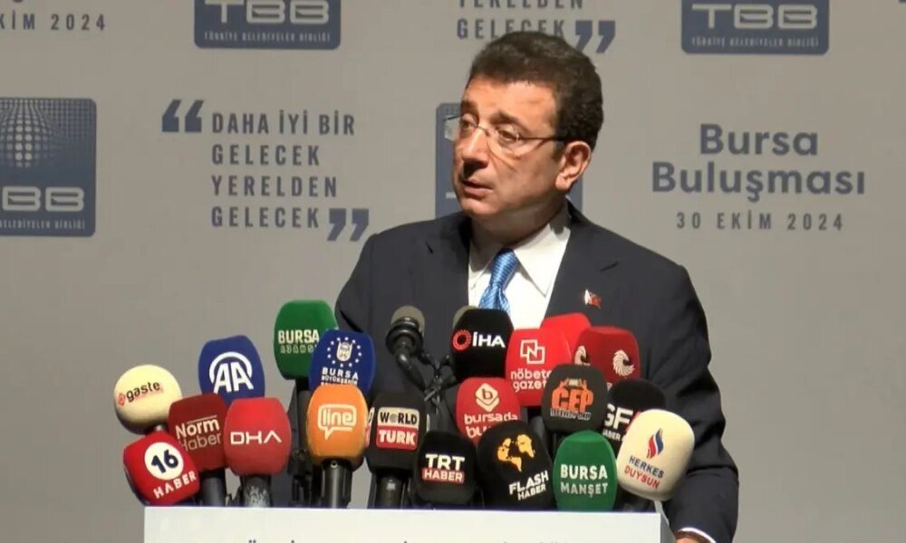 'SEÇİM KAYBET, MİLLETİ MUTLU ET' Türkiye Belediyeler Birliği ve İstanbul Büyükşehir Belediye Başkanı Ekrem İmamoğlu, Bursa'da Merinos Atatürk Kongre ve Kültür Merkezi'nde düzenlenen programda, STK temsilcileri...