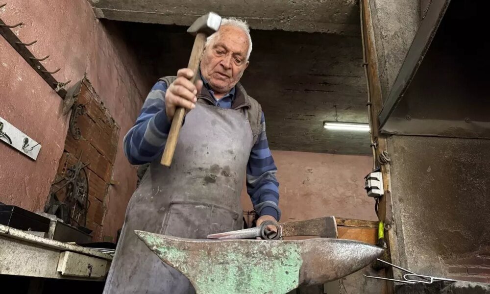 Salih Koçoğlu, 83 yaşında babasının mesleğini 68 yıldır sürdürüyor ve demir ustalığını yaşatıyor.